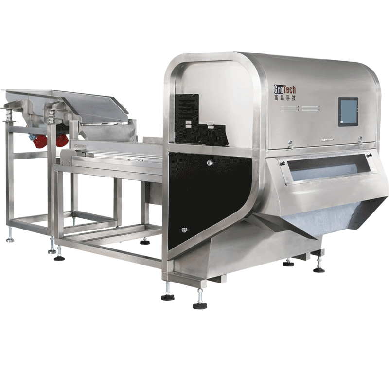 Grotech sorter can sort almonds, hazelnuts, pistachios, pecans, macadamias and more. Foreign objects such as stones can be detected and removed from the raw material. Grotech Nut Color sorters always provide customers with intelligent, professional a1